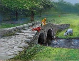 Pooh Fishing With Friends - canvas