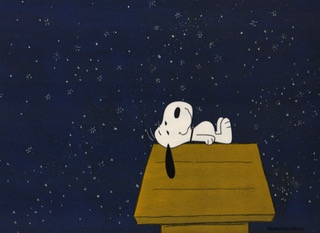 Snoopy sleeping on dog house