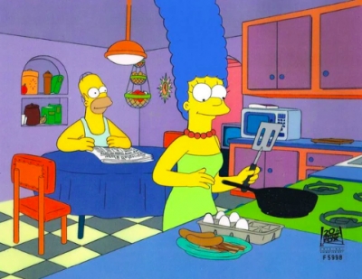 Homer Simpson and Marge cooking