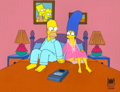 Homer and Marge in bed with tape