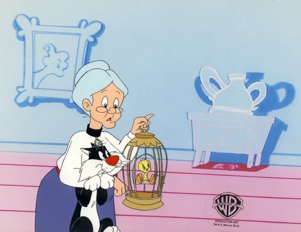 This is an original hand painted production cel from "Sylvester and Tweety Mysteries".