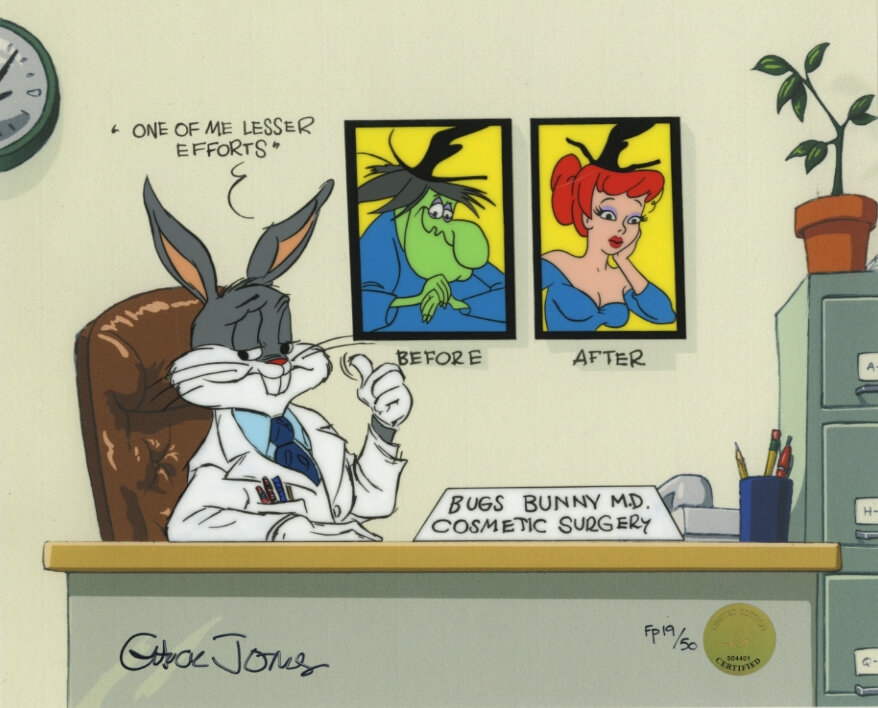 This is a hand painted limited edition cel created from an original Chuck Jones work. This bears the official Chuck Jones estate signature. This is a perfect piece for the plastic surgeon in your life.