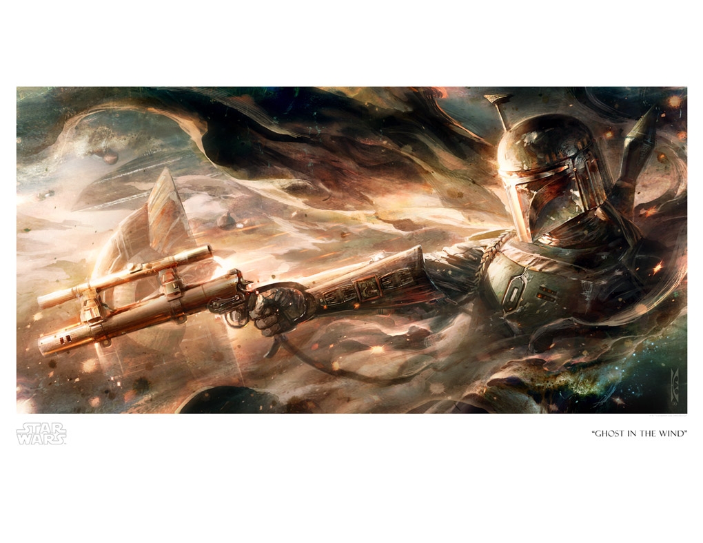 This is a limited edition giclee on paper. Inspired by Star Wars: The Empire Strikes Back featuring Boba Fett.
