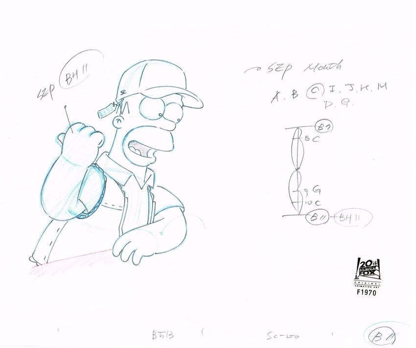 This is an original production drawing used in making an episode of "The Simpsons". Episode title "Maximum Homerdrive", March 28, 1999 (Season 10). Featured here is Homer Simpson.200
