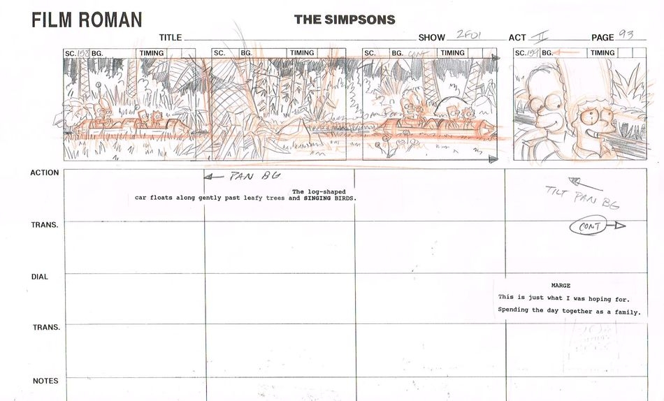 This is a rare original storyboard used in making "The Simpsons". Storyboards are where animation is created. Story lines, dialogue, action, settings, everything comes together at this crucial juncture before being passed on to the animation team to bring it to life. Storyboards are where the magic happens, and where animation directors do their most important work. What they lack in color and immediate visual impact, they more than make up for in rarity and creative authenticity. Storyboards are an important component of a serious animation art collection. This storyboard was used in making episode "Itchy & Scratchy Land", October 2, 1994 (Season 6).400