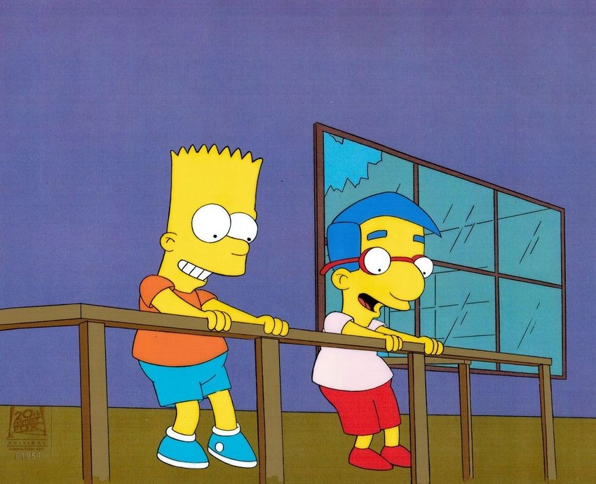 This is an original production cel used on making "Homer's Enemy". Featured here is Bart and Milhouse.