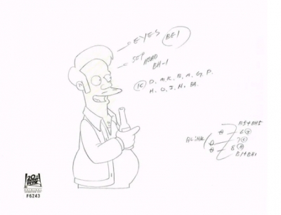 This is an original production drawing of Comic Book Guy used in making an episode of The Simpsons. Episode title "My Big Fat Greek Wedding".145