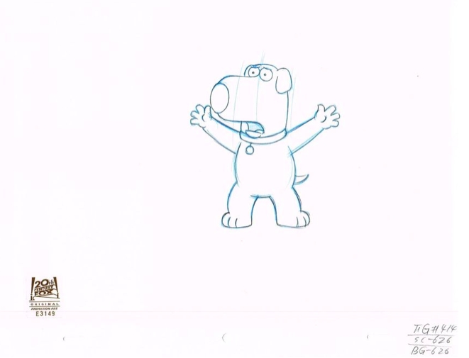 This is an original production drawing used in making an episode of "Family Guy". Episode title "Peter's Got Woods", September 11, 2005. Featured here is Brian.140