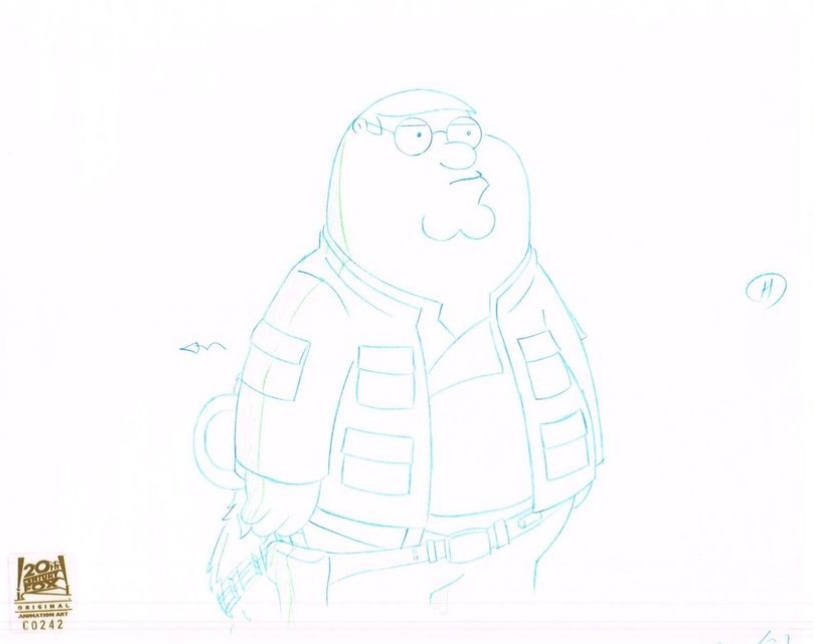 This is an original production drawing used in making an episode of "Family Guy". Episode title "Something, Something, Something, Dark Side", May 23, 2010. Featured here is Peter Griffin as Han Solo.160
