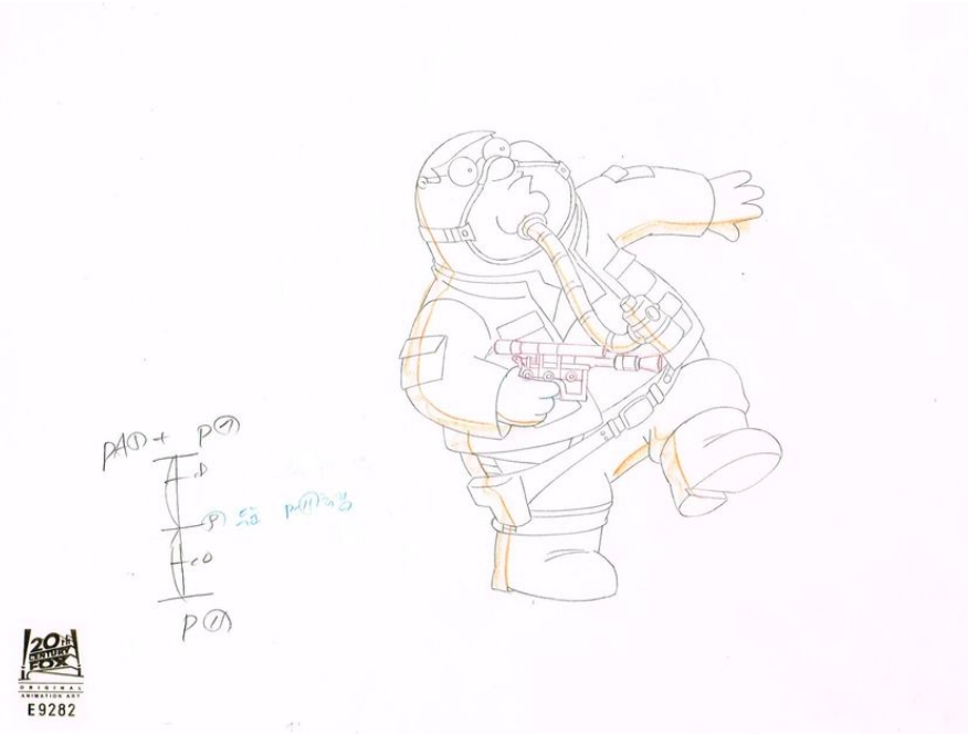 This is an original production drawing used in making an episode of "Family Guy". Episode title "Something, Something, Something, Dark Side", May 23, 2010. Featured here is Peter Griffin as Han Solo.