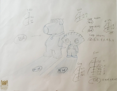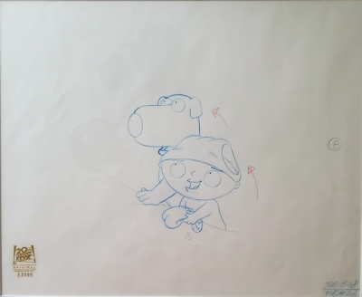 Original production drawings are one-of-a-kind pieces of animation art. Prior to the creation of cels, each character pose and action must be drawn in pencil. These drawings are the artistic backbone of the film or television show, and are much in demand by collectors.