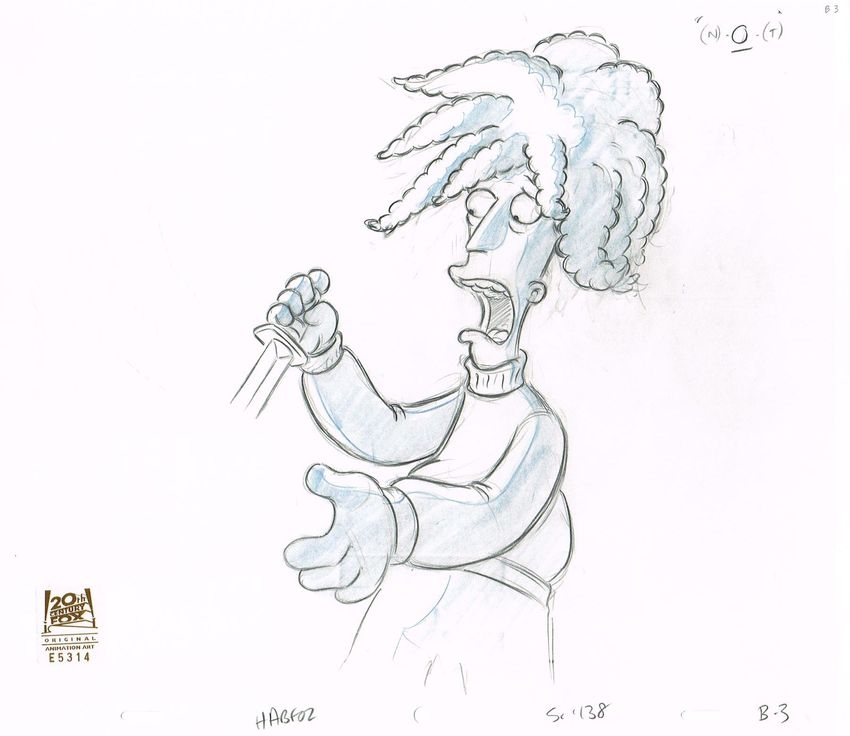 This is an original production drawing used in making an episode of "The Simpsons". Episode title "The Italian Bob". Featured here is Sideshow Bob.175