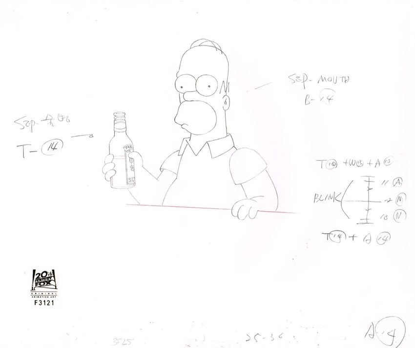 This is an original production drawing used in making an episode of "The Simpsons". Episode title "Springfield Files". Featured here is Homer Simpson.200