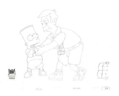 This is an original production drawing used in making The Simpsons. Episode title "The Italian Bob" Dec. 11, 2005. Featured here is Sideshow Bob.