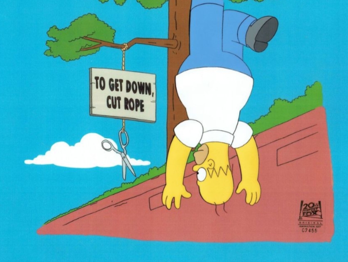 This is an original production cel used in making an episode of "The Simpsons". Featured here is Homer Simpson. 510