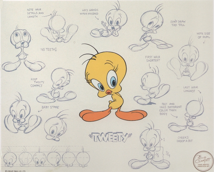 This is a hand painted limited edition cel featuring Tweety. Tweety Model Sheet has not been available for many years and we are proud to offer this to our collectors.