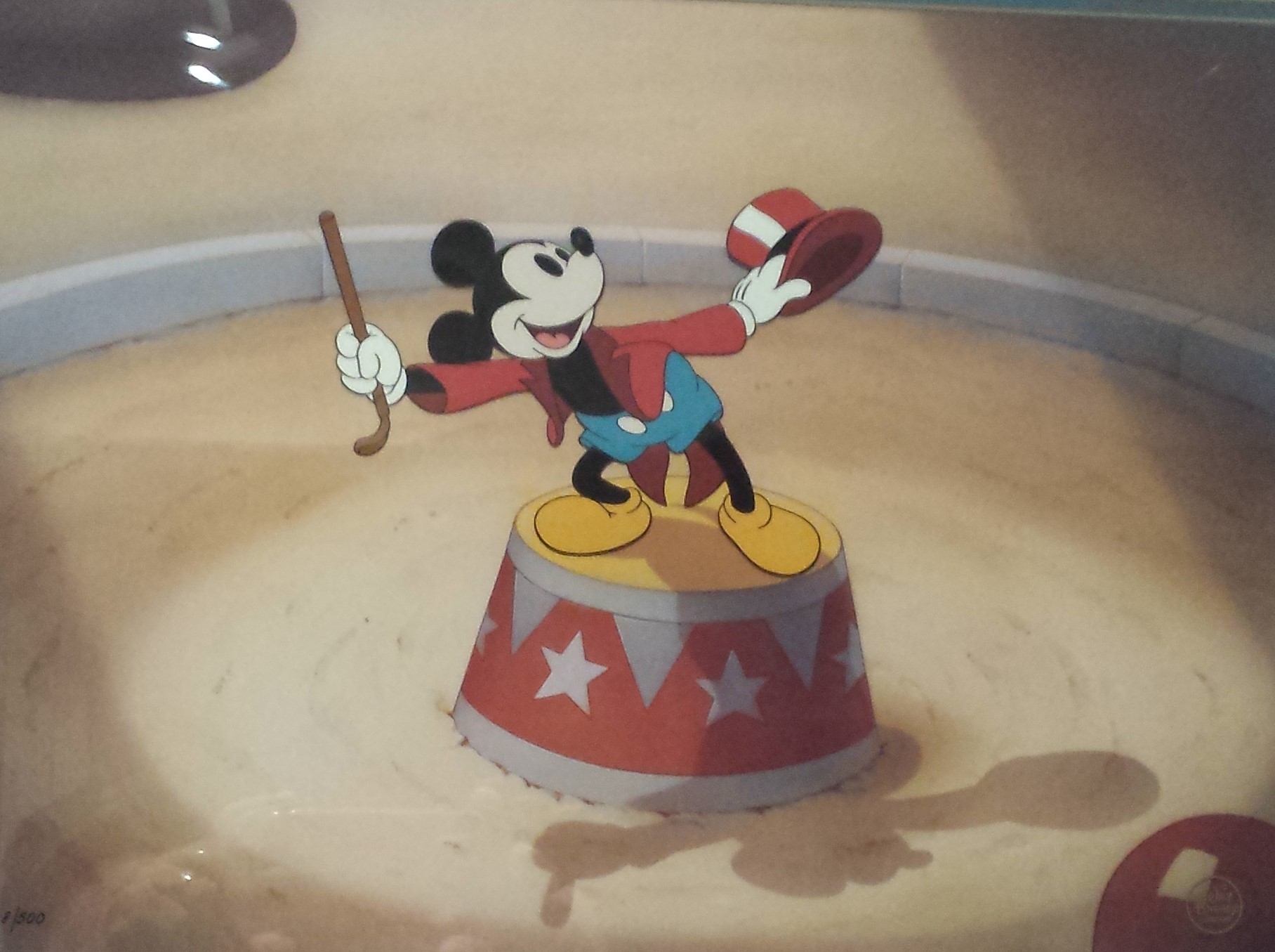 This is a hand painted limited edition cel featuring Walt Disney's most famous character Mickey Mouse. This has not been available for many years and we are proud to offer this to our collectors.