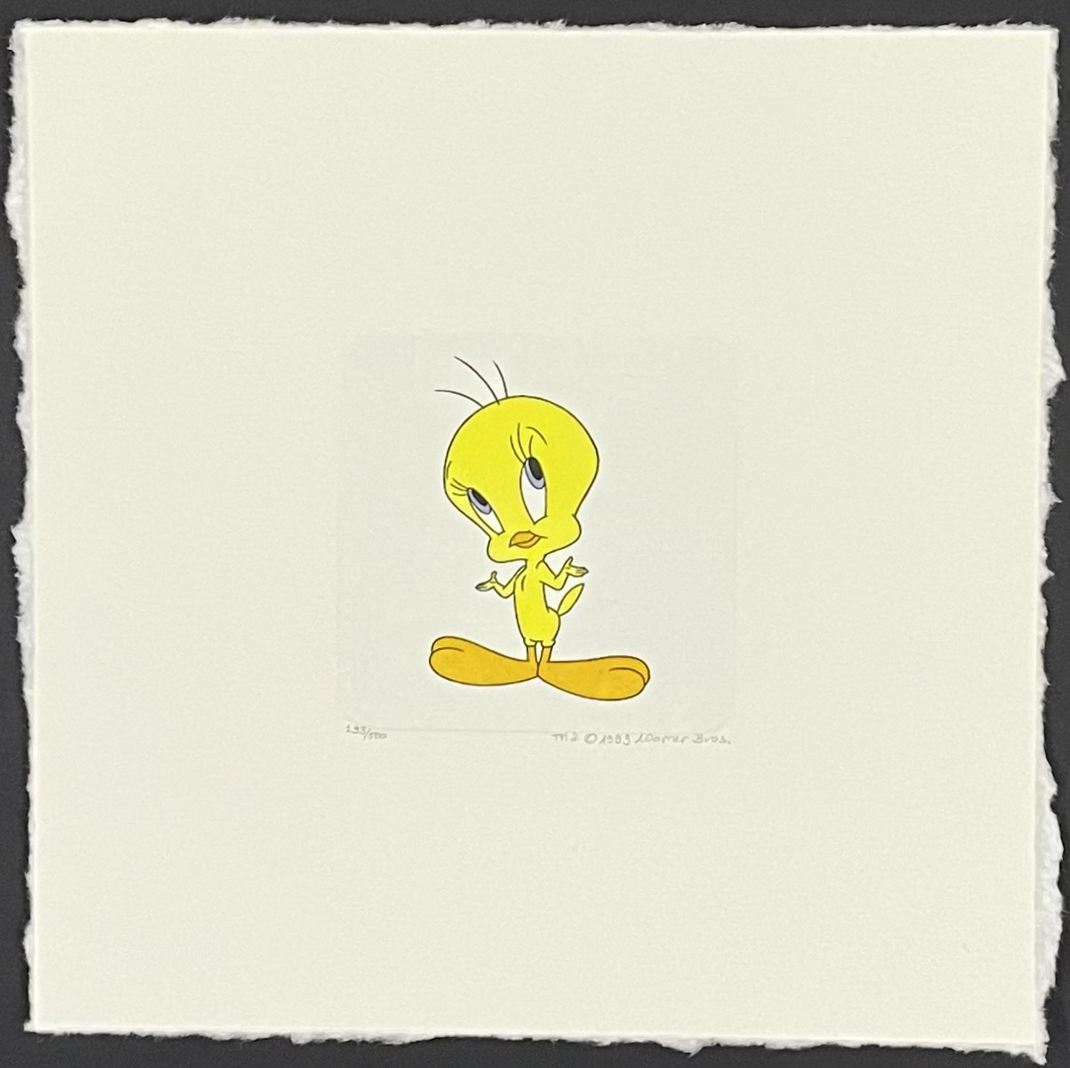 Tweety looks just adorable in this hand painted limited edition animation etching. Signed by Sowa and Reiser. Featured here is Tweety.