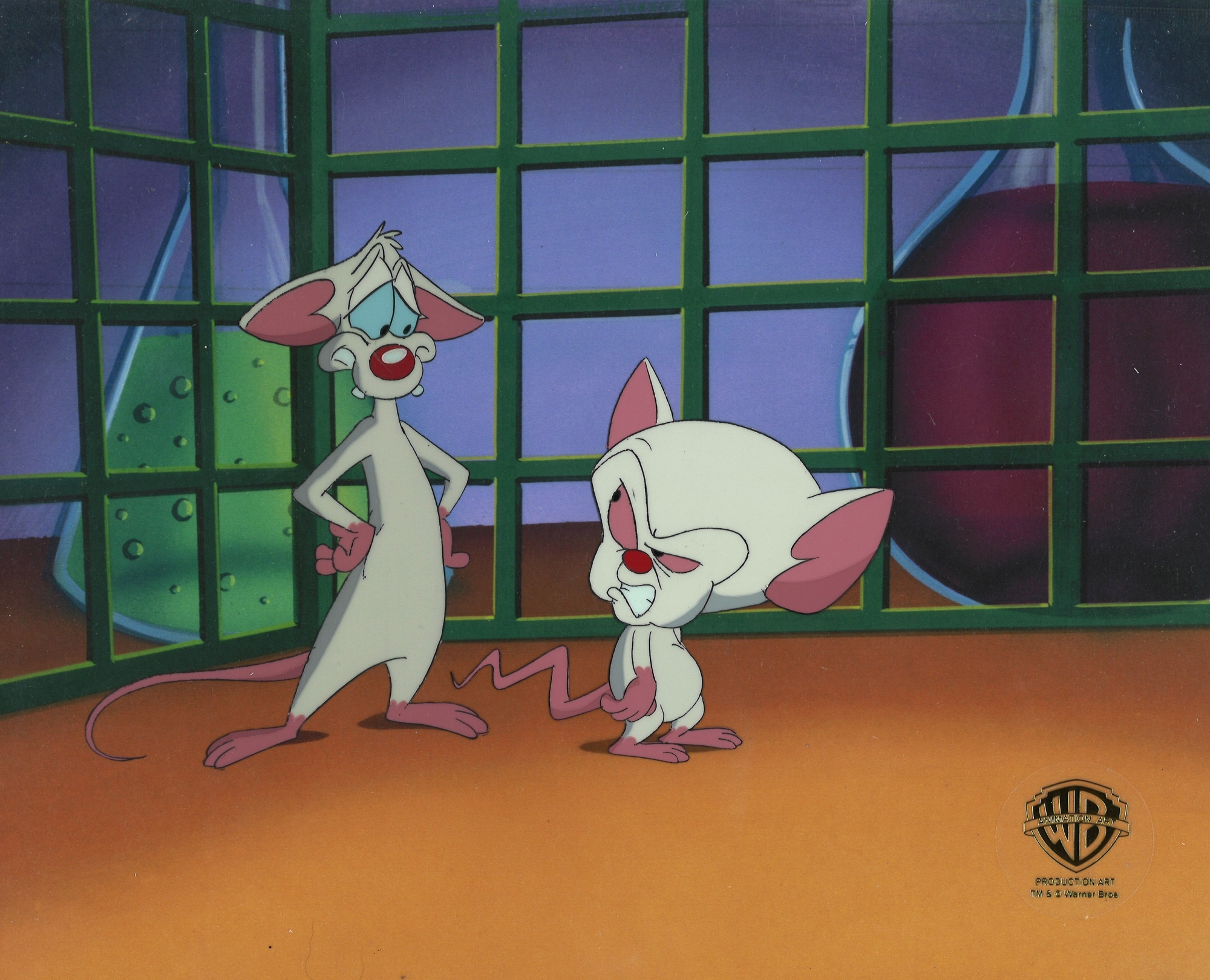 This is an original hand painted production cel. Featured here is Pinky and Brian from "Pinky and the Brain".525
