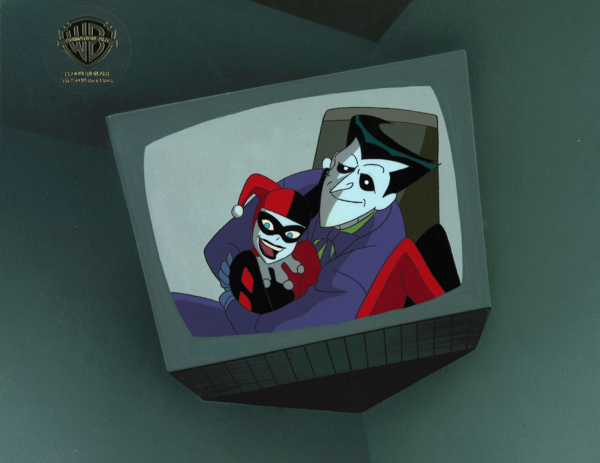 This is an original hand painted production cel. Featured here are Joker and Harley. 525