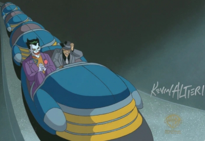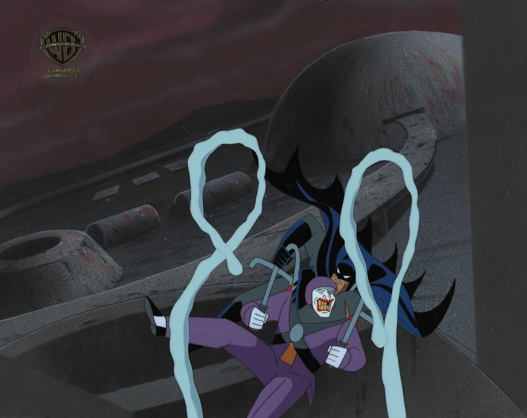 This is an original hand painted production cel. Featured here are Joker and Batman.525