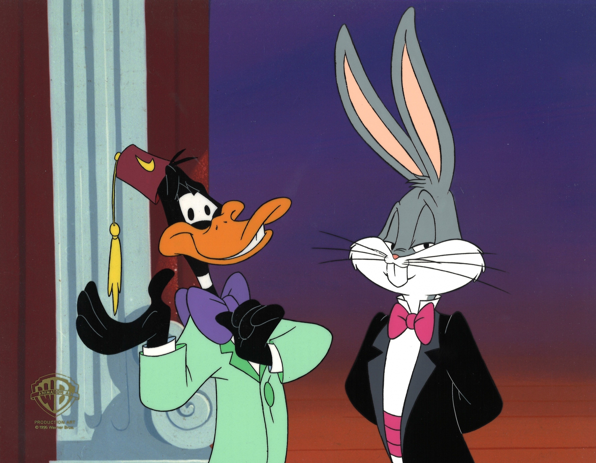 This is an original hand painted production cel featuring Bugs Bunny and Daffy Duck. 625