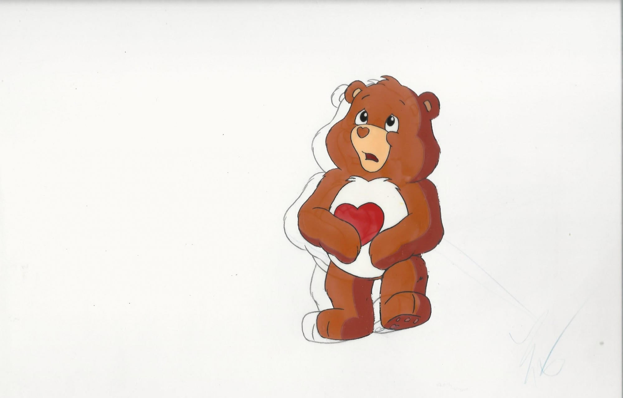 This is an original hand painted production cel of Braveheart Bear. Note: the drawing is stuck to the cel and can not be removed without damage.20
