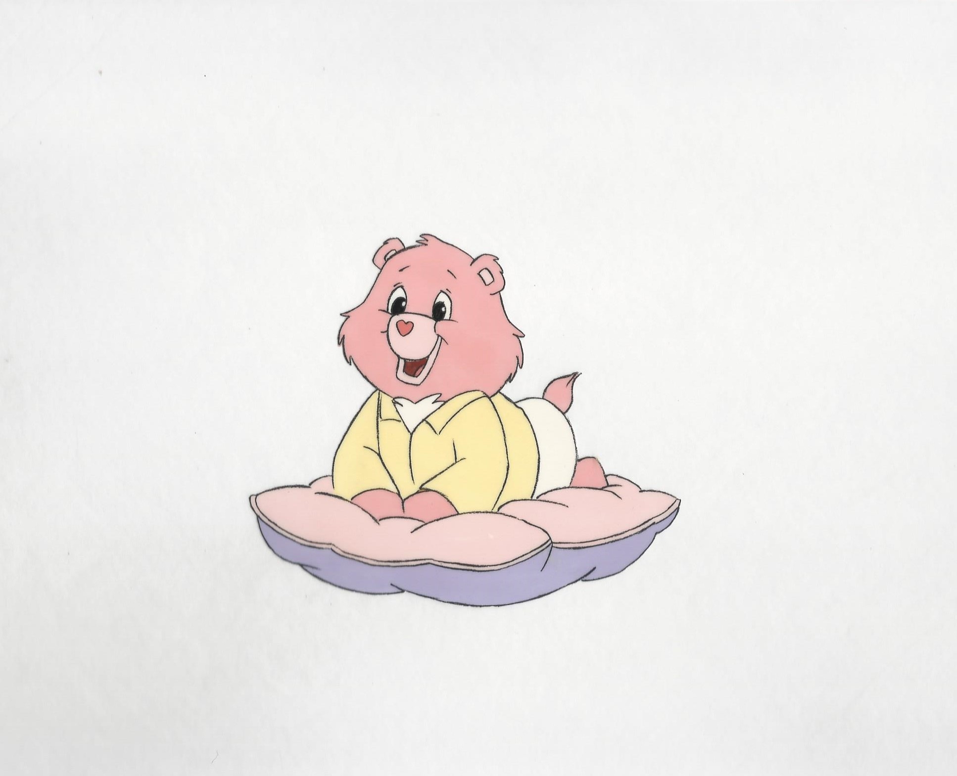 This is an original hand painted production cel. Featured here is a Cheer Bear Carebear. This cel comes with the matching production drawing. Note: this piece comes with a gallery certificate of authenticity. If the drawing is framed separately there is an additional $125 charge. 30