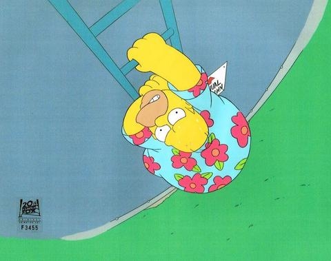 This is an original production cel used in making an episode of "The Simpsons". Episode title "King Size Homer" Nov. 5, 1995. Featured here is Homer Simpson.610