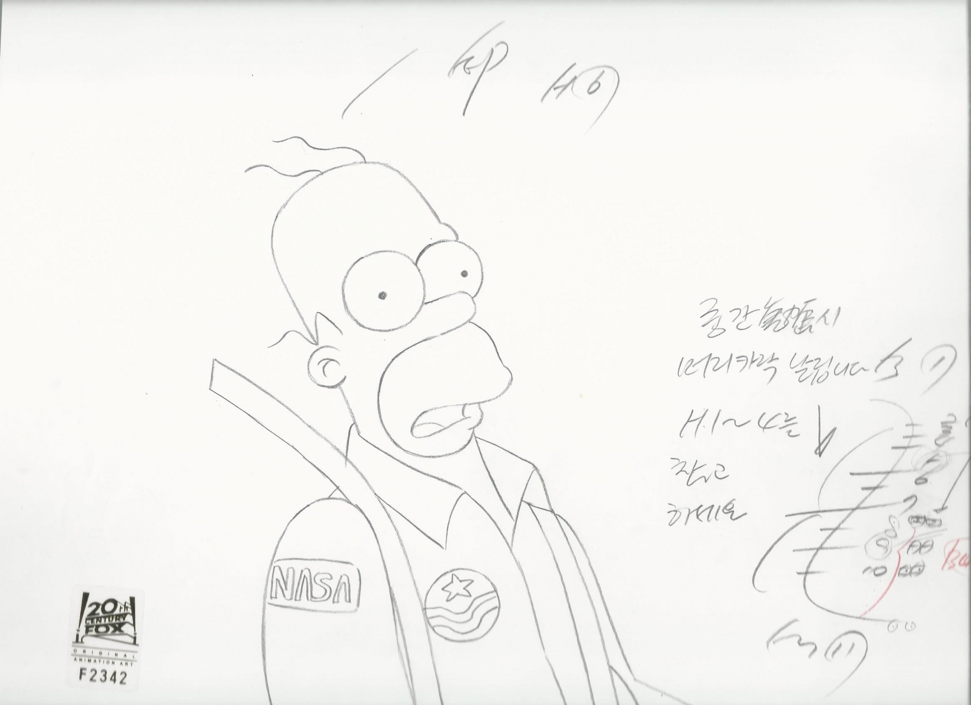 This is an original production drawing used in making an episode of "The Simpsons". Episode title "Deep Space Homer" Feb. 24, 1994. Featured here is Homer Simpson.250