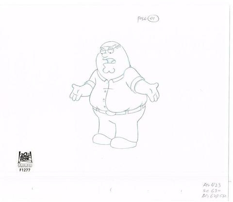 This is an original production drawing used in making an episode of "Family Guy". Episode title "I Take thee Quagmire" March 12. 2006. Featured here is Peter Griffin.140