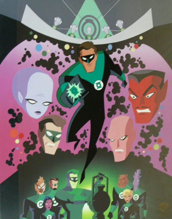 This is a hand painted limited edition cel. “Brightest Day” is taken from The New Batman/Superman Adventures. The episode charts the transformation of Kyle Rayner from an advertising illustrator into the Green Lantern, who joins the newly-formed Green Lantern Corps.