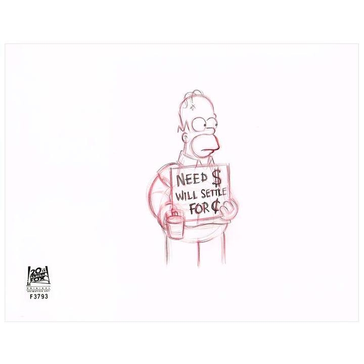 This is an original production drawing used in making an episode of "The Simpsons". Episode title "Milhouse Doesn't Live Here Anymore" Feb. 15, 2004. Featured here is Homer Simpson. 225