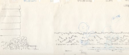 This is an original Background Layout with character detailedin blue line; two poistions. This was used in the making of "Life is a Circus, Charlie Brown" 1980. Featured here is Charlie Brown.