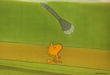 This is an original production cel with matching production drawing that was used in the making of "She's a Good Skate, Charlie Brown" 1980. Featured here is Woodstock. 800