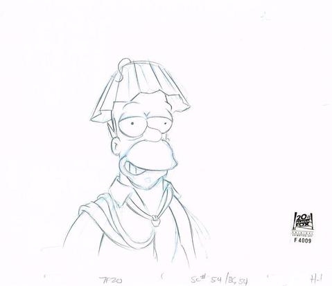 This is an original production drawing used in making an episode of "The Simpsons". Episode title "The War of the Simpsons" May 2, 1991. Featured here is Homer Simpson.