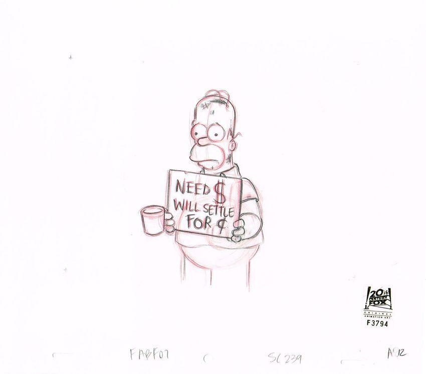 This is an original production drawing used in making an episode FAB07 of "The Simpsons". Episode title "Milhouse Doesn't Live Here Anymore" Feb. 15, 2004. Featured here is Homer Simpson.225