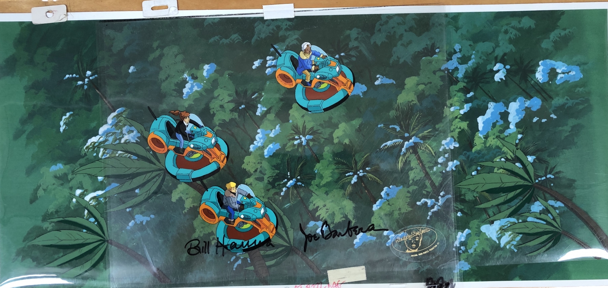 This is an original hand painted production cel used in making "The New Adventures of Jonny Quest" 1986. This is a unique pan cel and is signed by Bill Hanna and Joe Barbera. 525