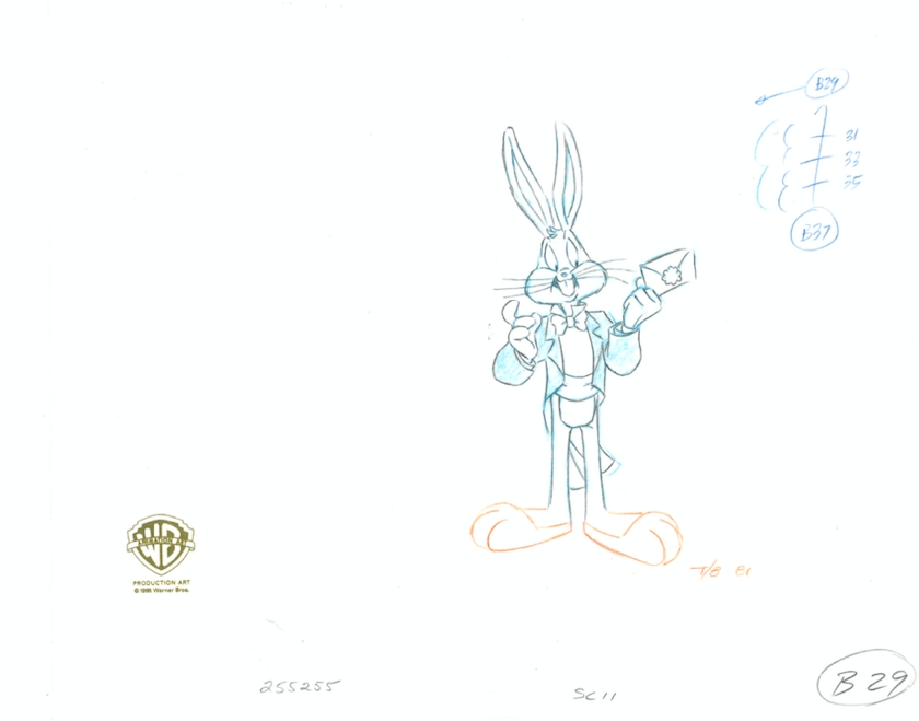 Original production drawings are one-of-a-kind pieces of animation art. Prior to the creation of cels, each character pose and action must be drawn in pencil. These drawings are the artistic backbone of the film or television show, and are much in demand by collectors.