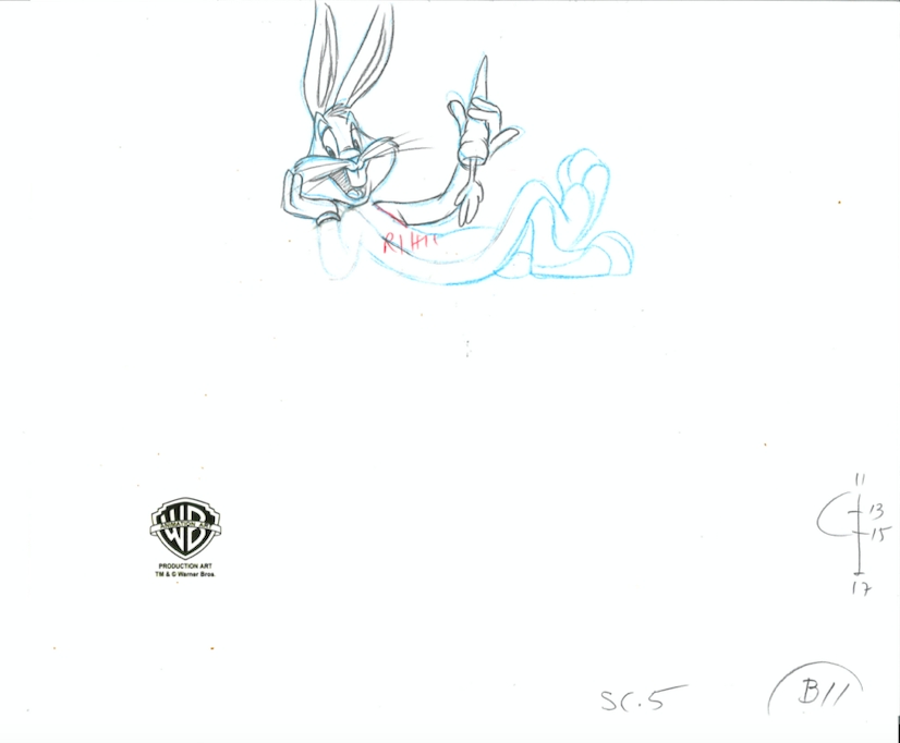 This is an original production drawing featuring Bugs Bunny used in making "Bugs Bunny Overtures to Disaster" 1990.