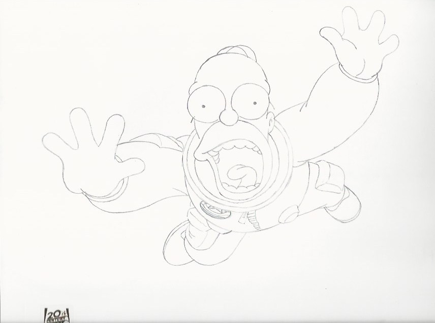 This is an original production drawing used in making an episode of "The Simpsons". Episode 1F13title "Deep Space Homer" February 24, 1994. Featured here is Homer Simpson.295