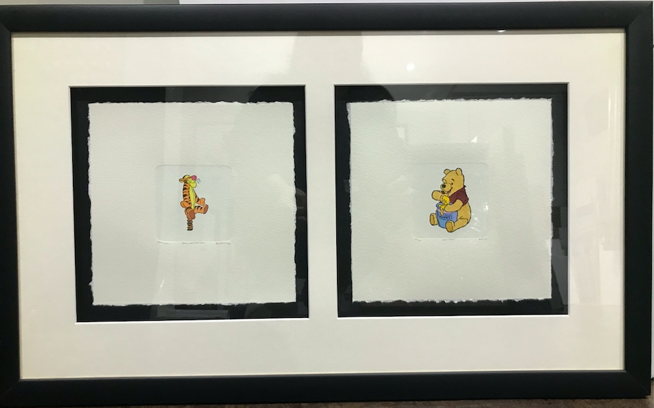 This is a great way to display 2 etchings together. Here is Winnie the Pooh and Tigger side by side. You can choose any 2 etchings, just send us an email with your request contact@animationconnection.com.