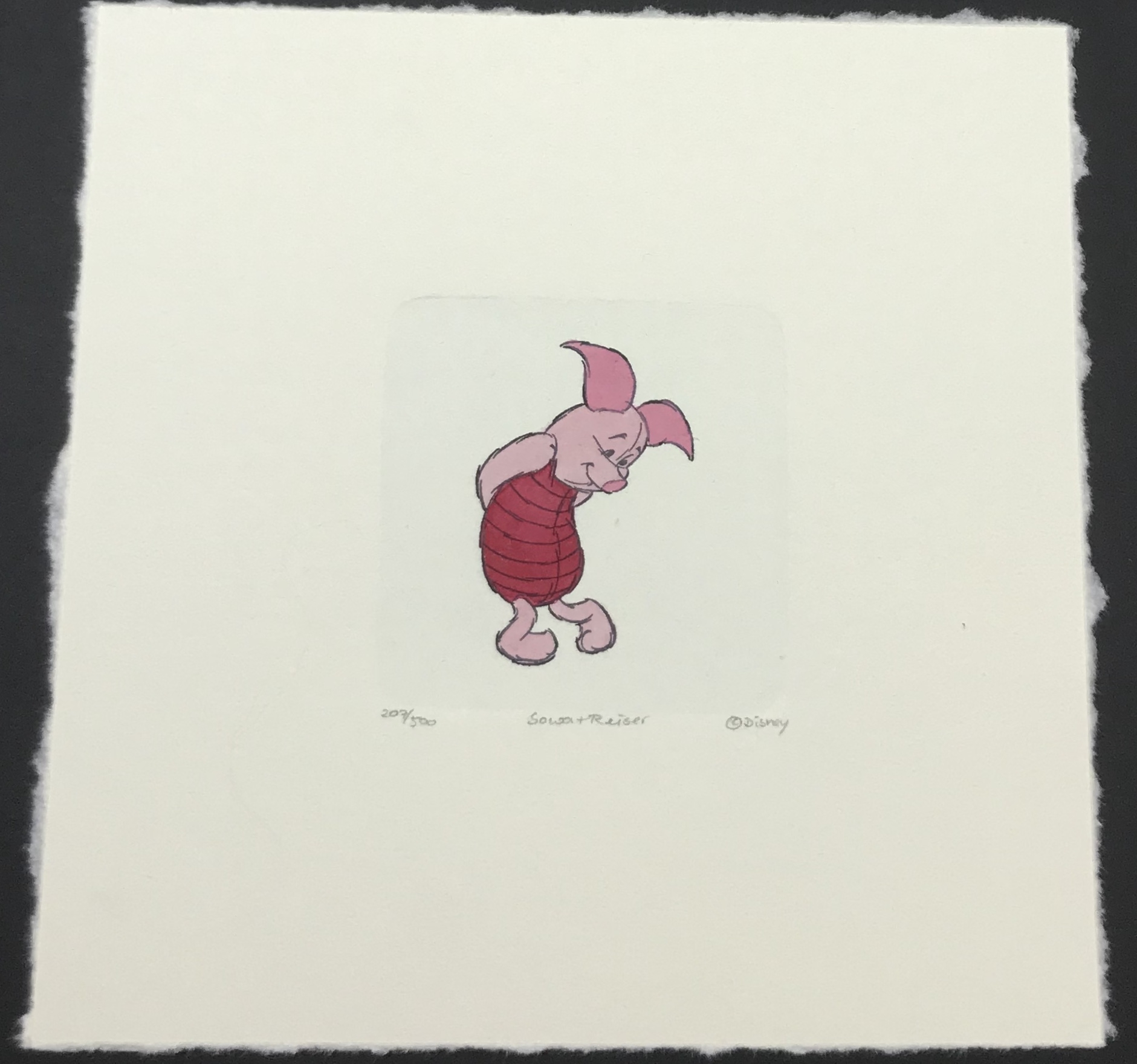 Pooh's shy, loyal, and trusting friend Piglet from "Winnie the Pooh" is captured in this cute animation art etching. Available framed for only $129US!