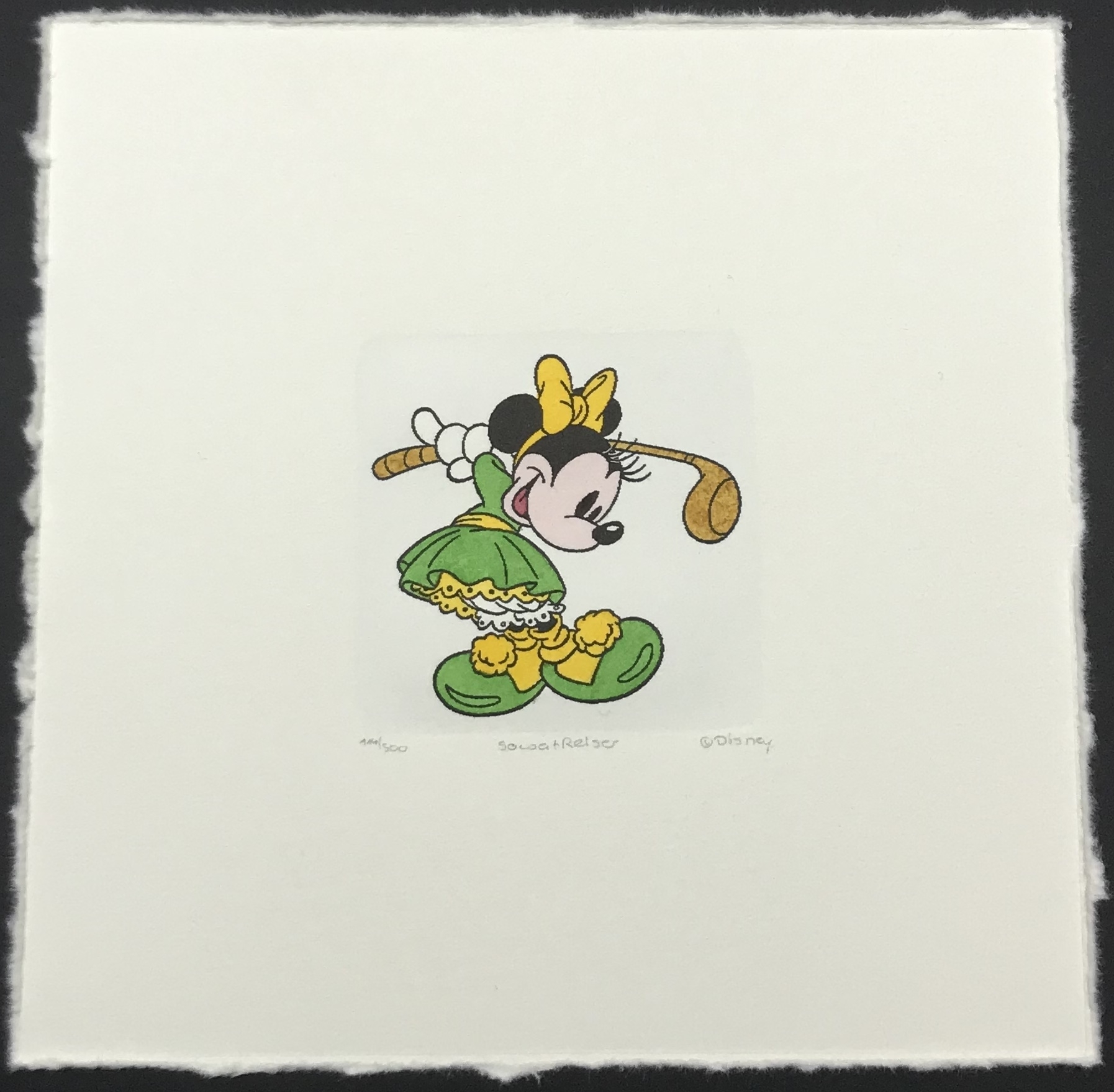 Look out golf fans, Minnie Mouse is showing you how it's done in this animation art etching! Available framed for only $129US!