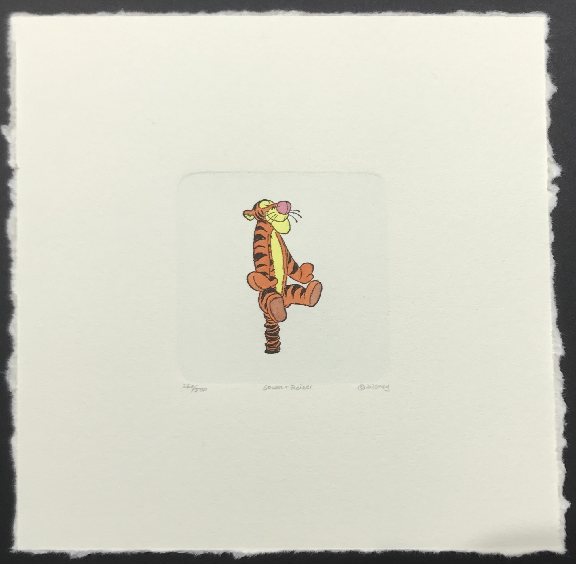 Tigger bounces on his tail in this cute animation art etching. Available framed for only $129US!