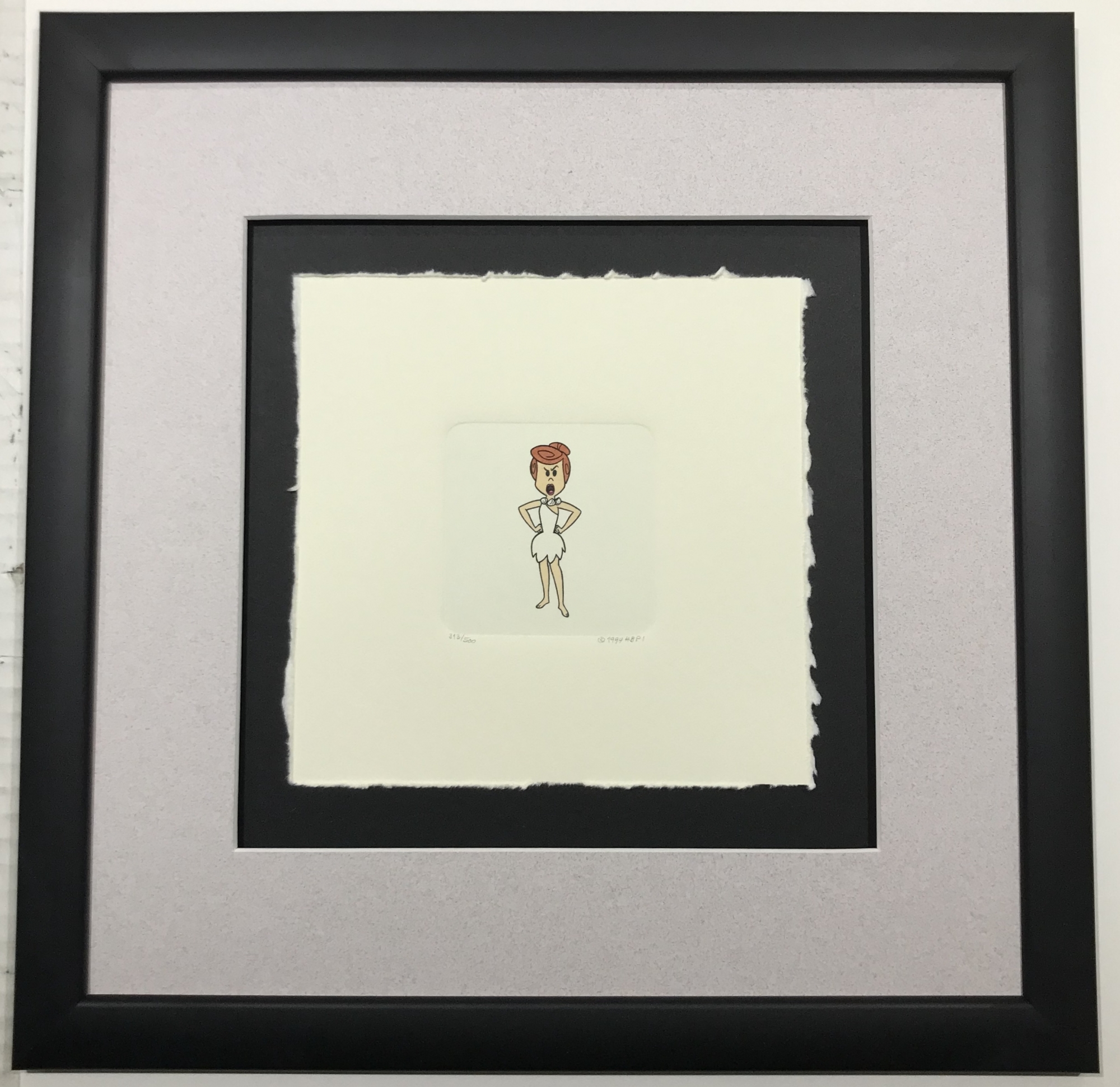 Wilma Flintstone is featured in this animation art hand painted etching. Available unframed for only $75US!