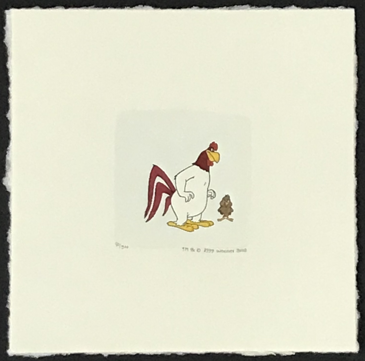 I say, I say boy! This great animation art etching of the obnoxious Foghorn Leghorn and the stubborn Henry Hawk. Available framed for only $129US!
