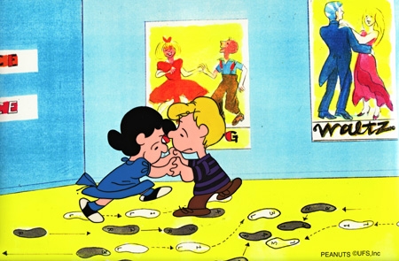 This is an original hand painted production cel with the matching animator's drawing(s) detailed with scene’s color call-outs (hole in drawing by caused seal). This was used in making "Happy New Year, Charlie Brown" . Featured here is Lucy and Schroeder.