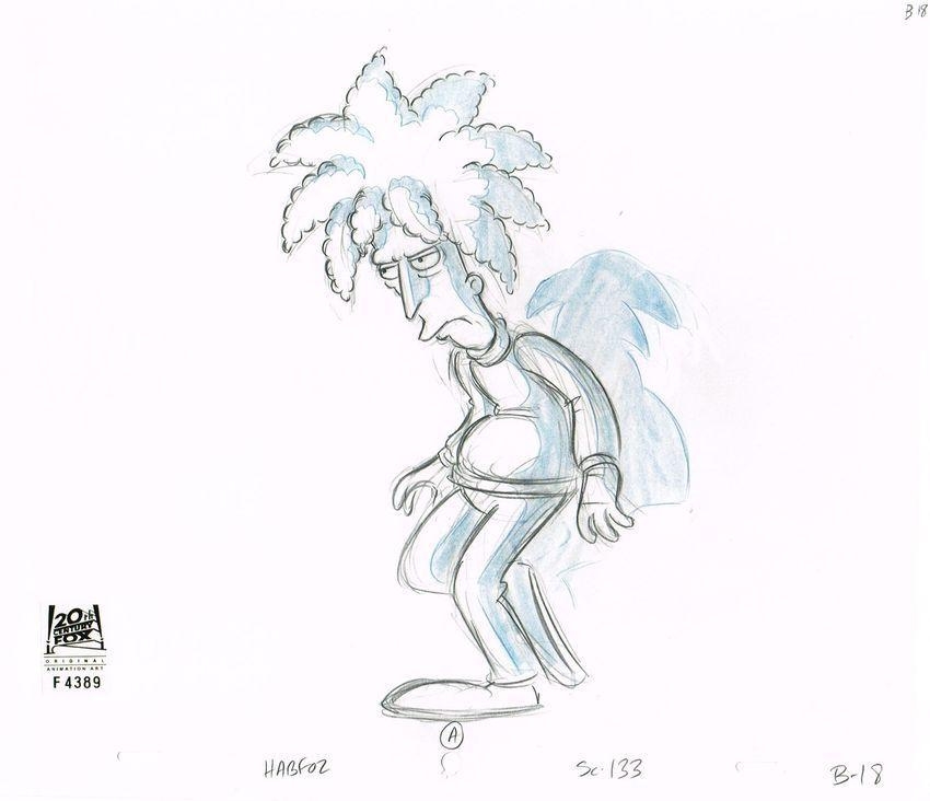 This is an original production drawing used in making an episode of "The Simpsons". Episode HABF02 title "The Italian Bob" December 11, 2005. Featured here is Sideshow Bob.250