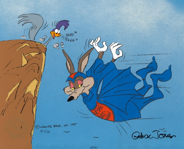 This is a hand painted limited edition cel featuring the famous Wile E. Coyote and Road Runner. Each is signed by the late Chuck Jones. SOLD OUT ONLY ONE AVAILABLE.
